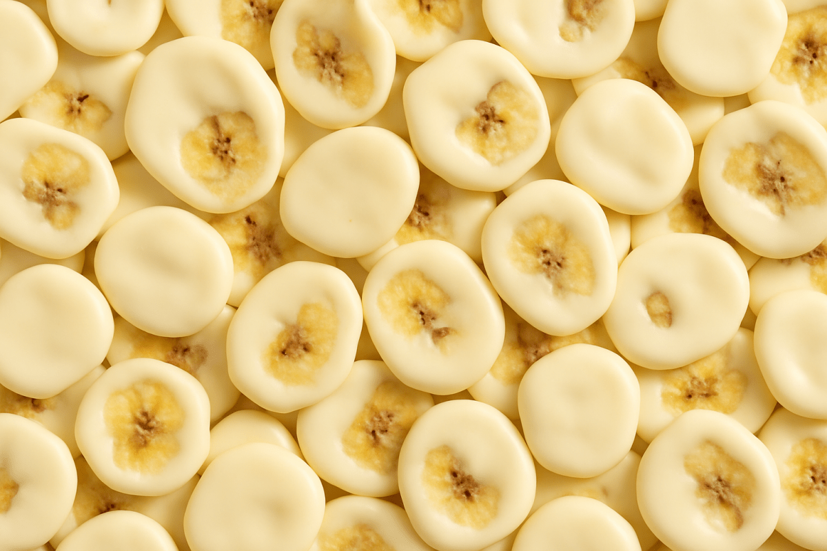 Bananenchips mit weißer Schokolade