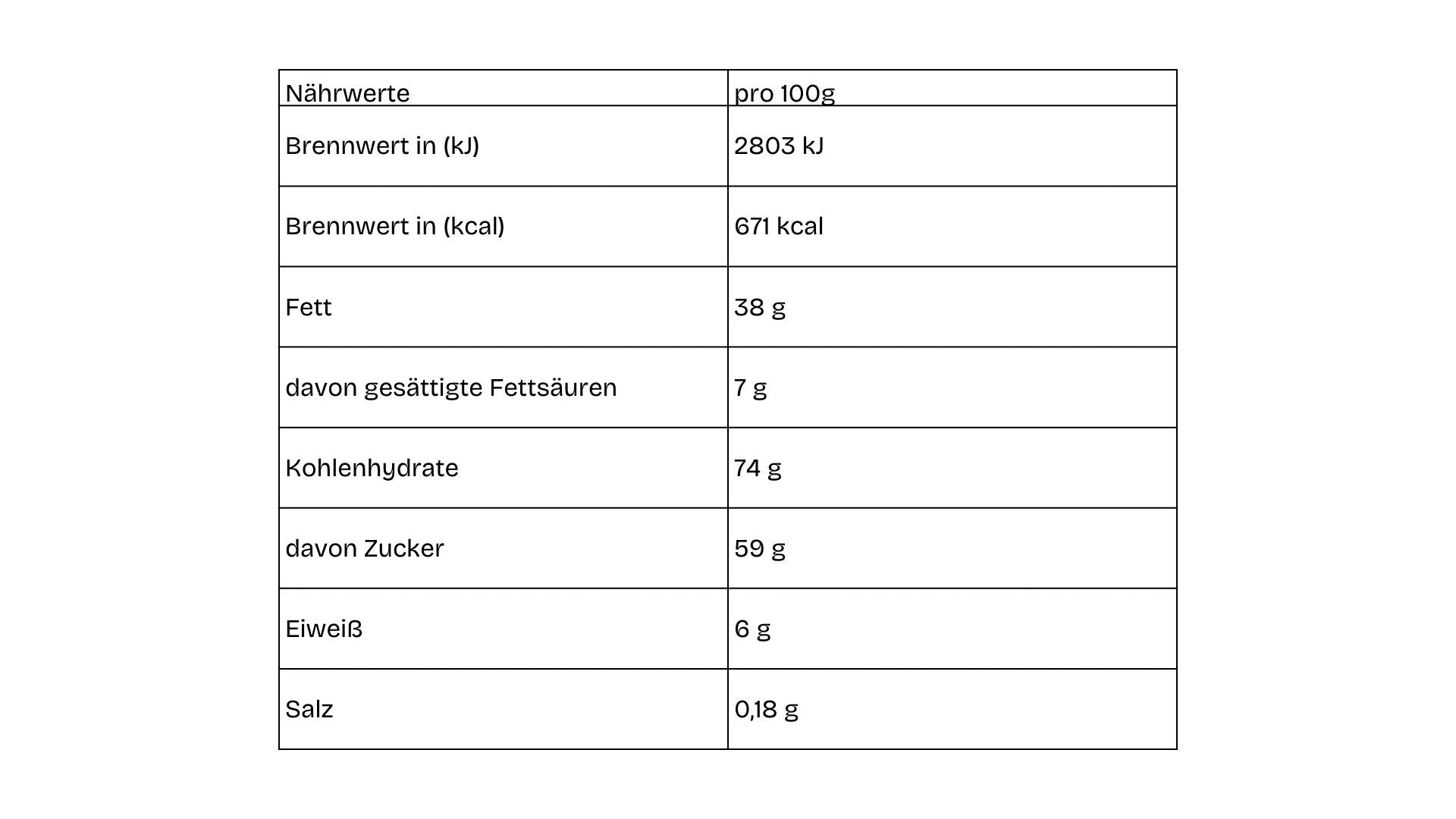 Kann Spuren von Gluten, weiteren Nüssen, Erdnüssen, Sesam und Schwefeldioxid (Sulfite) enthalten.